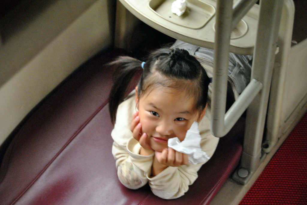 Su mamá, ante tal alboroto se levantó para cogerla y pedirnos disculpas. Pese a las diferencias del idioma, le dejamos claro que no era ninguna molestia y entablamos conversación. “El renacuajo” se llamaba Summer – el nombre no podía estar mejor elegido- y tanto ella como su madre eran de origen Chino. Inspirada por el momento me entraron ganas de hacer uno de mis retratos viajeros. Pese a los constantes baches, curvas y la ausencia de lápiz y goma, conseguí apañármelas con un bolígrafo. Poco a poco, el dibujo fue tomando forma y Summer me miraba de reojo sonriéndome y sintiéndose importante mientras se daba cuenta de que la del dibujo se parecía un poco a ella.